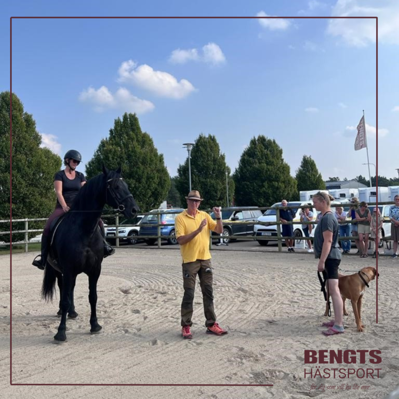 Nästa utmaning är att ha kontroll på sin hund när någon rider i paddocken, både när man är utanför men även inne på ridbanan.