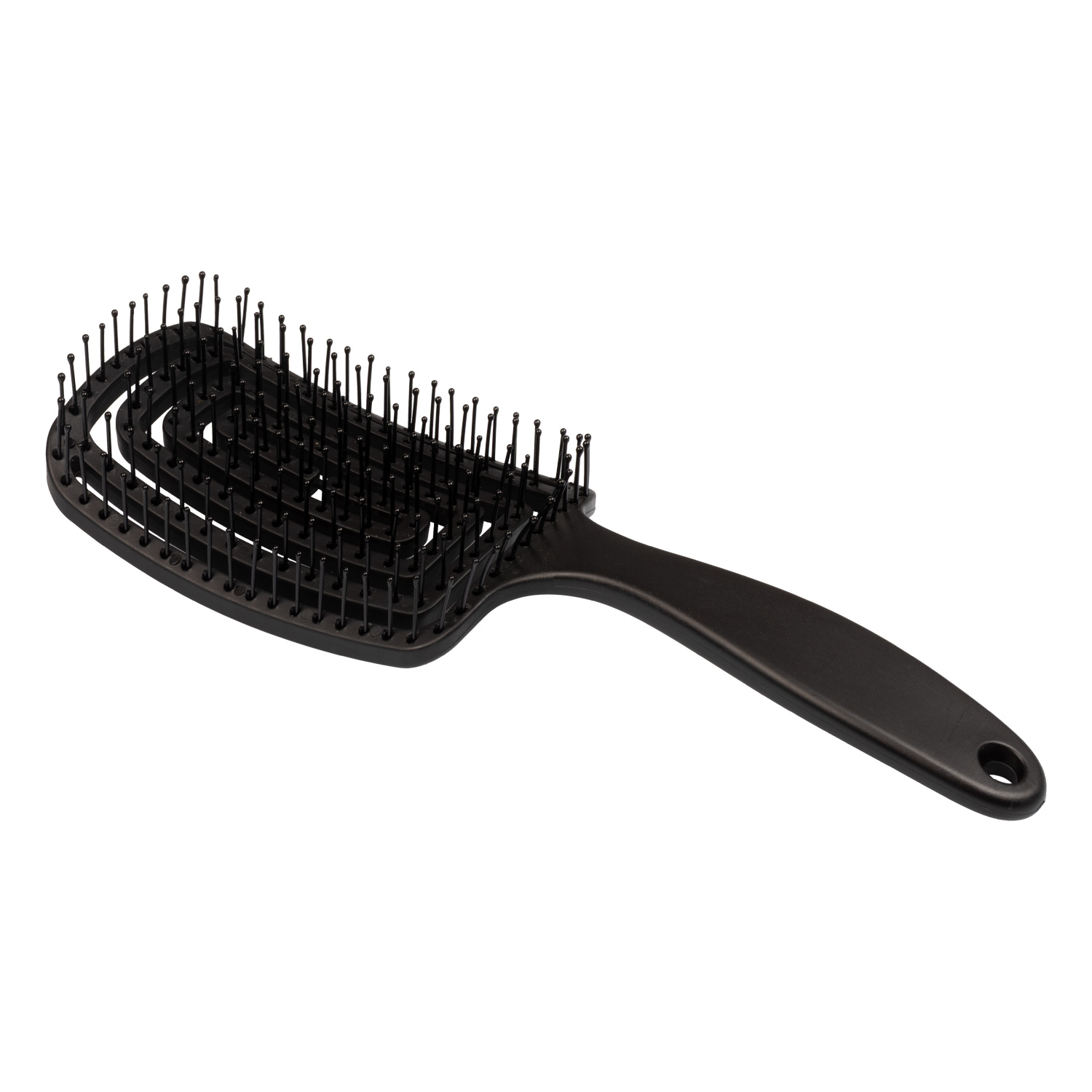 Denna manborste har en total längd på 24 cm och tänder som mäter 3 cm. Tack vare den flexibla basen på svansborsten så ger den en skonsam, jämn genomkamning. Tänderna har rundade toppar som skyddar både hud och päls mot irritation. Det ergonomiska handtaget ger ett bekvämt grepp och har ett praktiskt hål i änden, vilket gör det enkelt att hänga upp kammen efter användning.