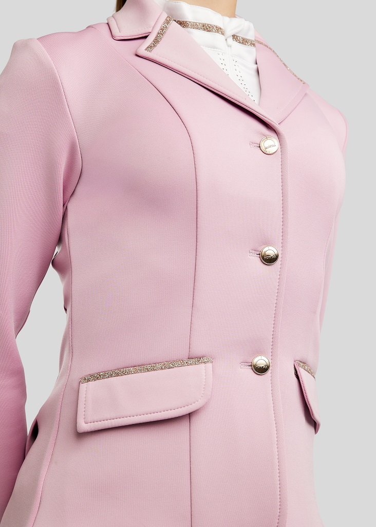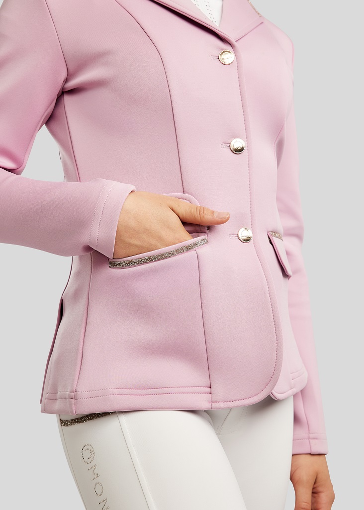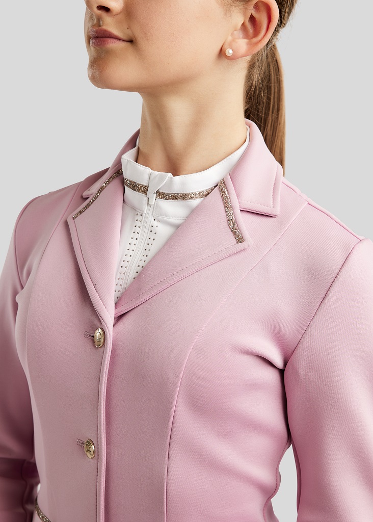 MoLila tävlingskavaj för barn från Montar kombinerar ett klassiskt uttryck med modern elegans och genomtänkt funktionalitet. Kavajen är skapad för ryttaren som vill ha en sofistikerad och exklusiv look på tävlingsbanan, utan att kompromissa med komfort eller rörelsefrihet. Denna säsong i en fantastiskt fin rosa eller puderrosa färg med glittrande detaljer.